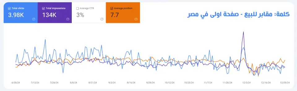 هنا نعرض لكم بعض نتائج ونجاحات شركتنا في الوصول للصفحات الأولى وتحقيق زيارات للمواقع الإلكترونية التي نعمل عليهاالتصدر في جوجل مصر بكلمة مقابر للبيع وكلمات المقابر الخاصة بكل مناطق القاهرة والجيزة وتحقيق مبيعات مُمتازة من خلال الموقع